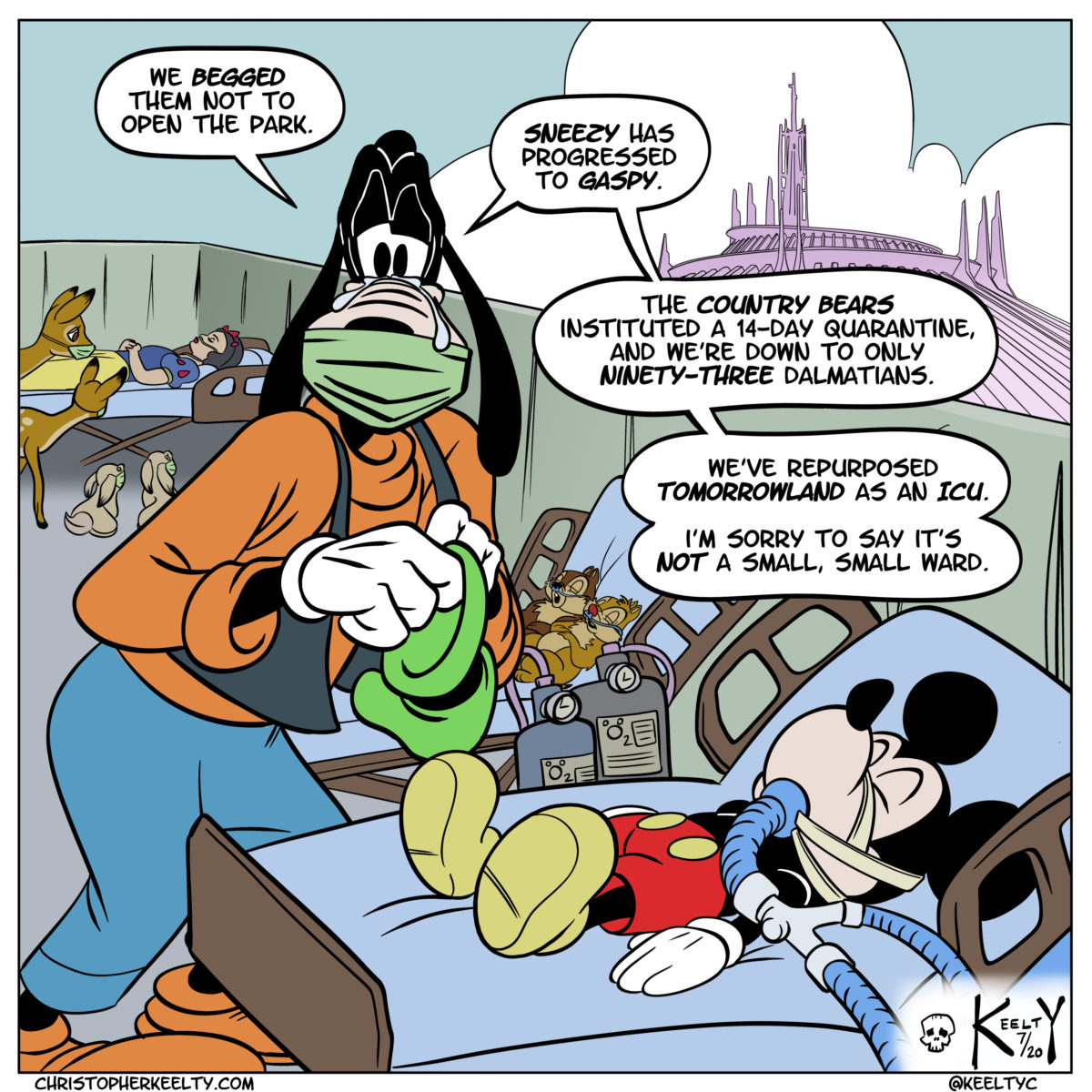 Yes, Walt Disney World in Orlando opened to the public again this past weekend–the same weekend the state of Florida announced a record 15,300 new cases of Covid-19 in a single day. Who is going to Disney World in the midst of a raging pandemic? You can call it stupid, you might even call it sociopathic, but I guess even when there’s a killer pandemic, you just gotta get your Dole Whip on.